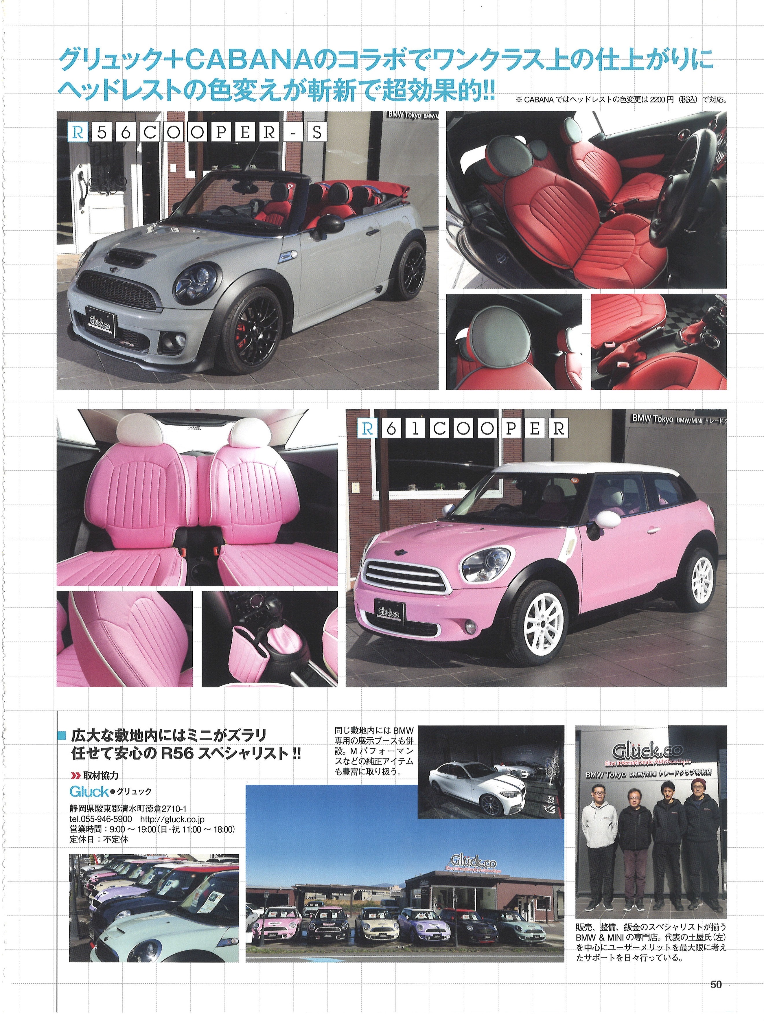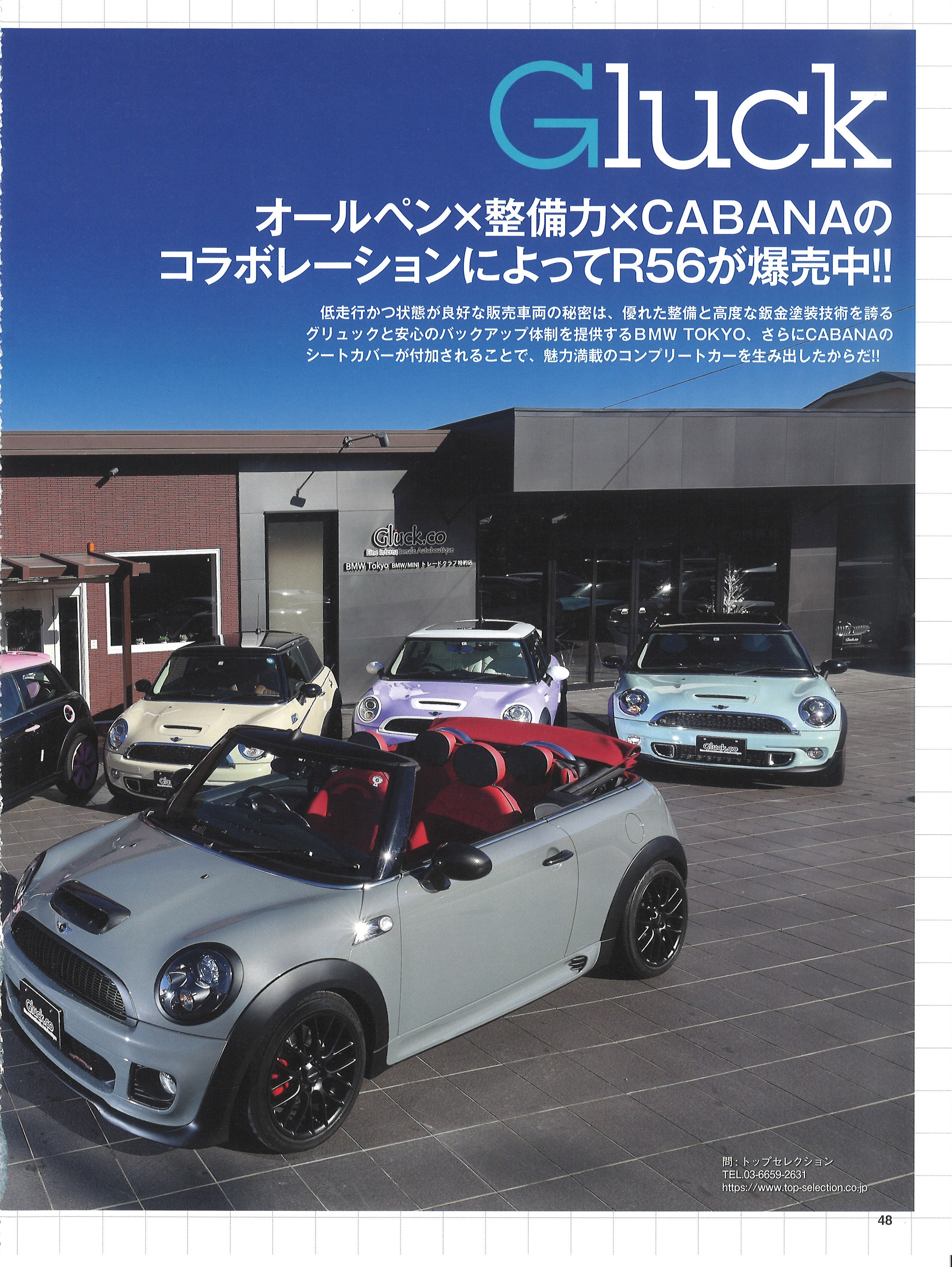 BMW MINI MAGAZINE にBMW・MINI専門店Glück(グリュック) R56にCABANAシートカバーを掲載いただきました。