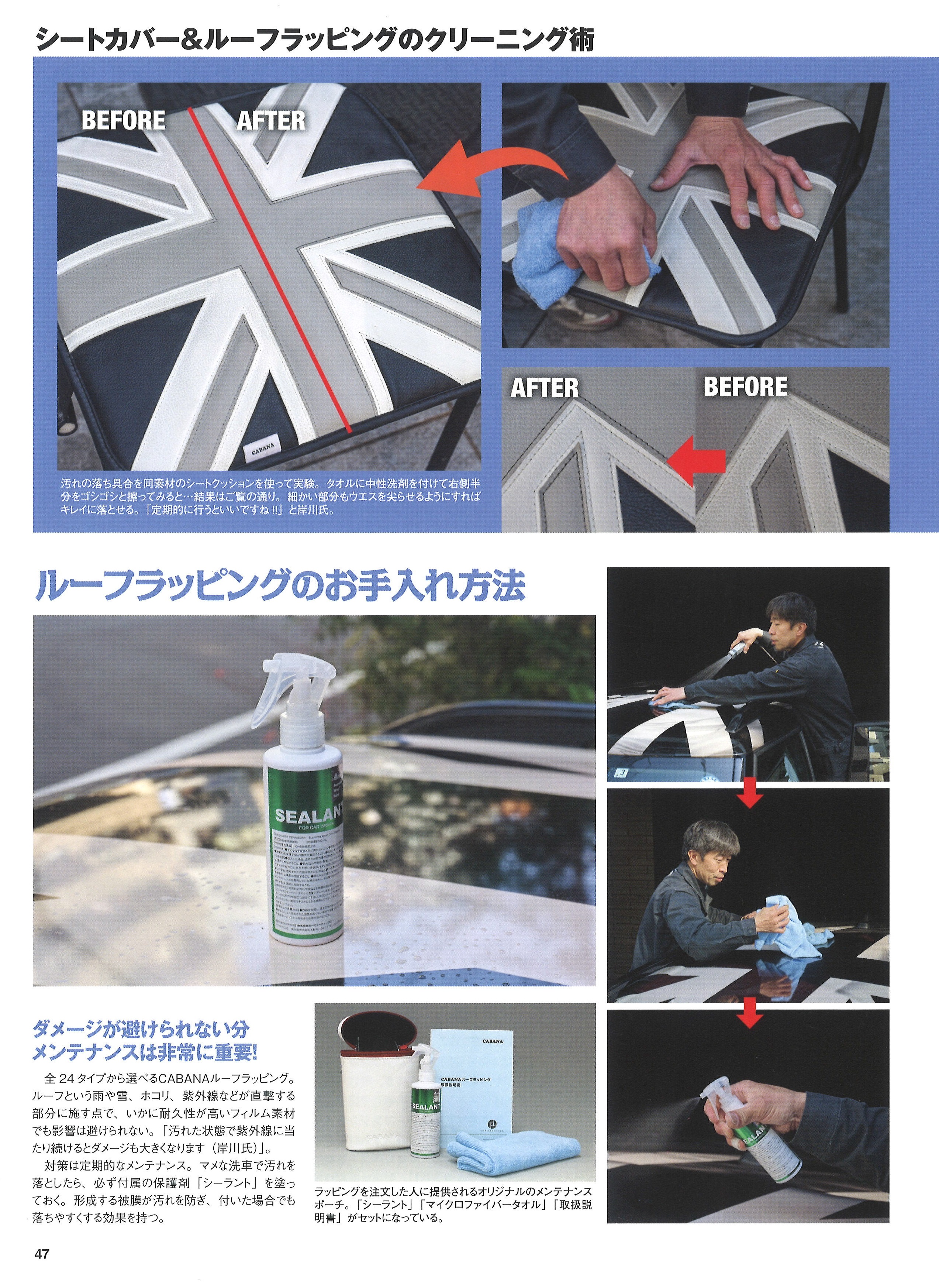 vol.42ではカバナ選任スタッフによる、CABANAのシートカバーのお手入れ、クリーニング方法を徹底解説しています。